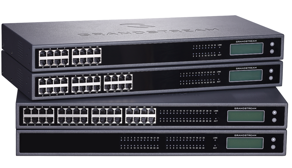 - a Grandstream GXW42.. széria 16-48 analóg készülék csatlakoztatására alkalmas, kiváló megoldás nagyobb szervezetek, vállalkozások rendszereinek integrációjára